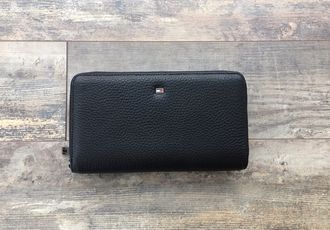 Клатч Tommy Hilfiger стильный и практичный аксессуар. Кошелек сделан из натуральной кожи. Основное пространство закрывается на молнию. Есть несколько отделений для купюр, также есть специальные карманы для карточек и карман на молнии для мелочи.