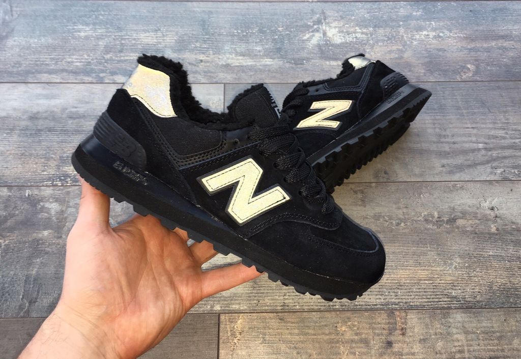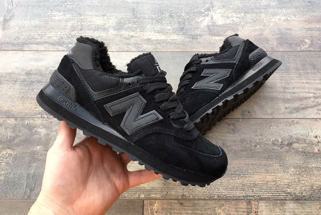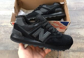 Кроссовки New Balance 574 All Black зимние выполнены из натуральной замши и текстиля.